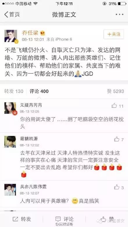 前几天乔任梁刚刚杯具过,说消防官兵是“飞蛾扑火,自取灭亡”……还要“人肉”他们