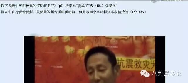 在512抗震救灾晚会的后台,陈道明接受采访时,还将“大难兴邦,否(pi)极泰来”说成了“fou极泰来”