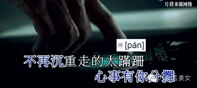 王菲的男友小谢,也唱错过,把“蹒(pan)跚”唱成了“满(man)跚”
