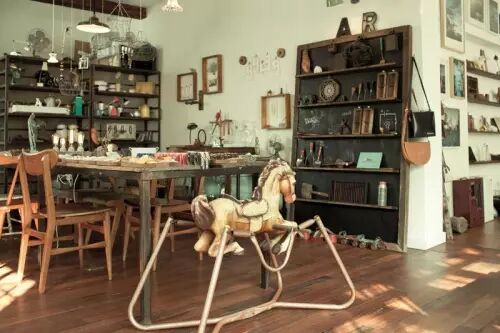 这家杂物风的店里有各种各样的小玩意,还有一个田园风的小院子,整体的风格让人感觉非常舒服随意。
