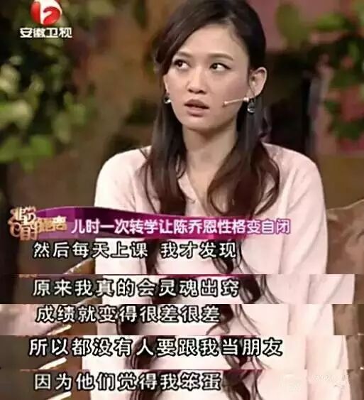 陈乔恩有一个哥哥和弟弟,她是老二夹在中间,又是一个女生,在家里的地位可想而知(当时家里比较重男轻女)。更加让人震惊的是,就算是一个女孩,陈妈妈实行的也是“棍棒教育”,把枯树枝捆一捆当作武器,经常把乔恩打到出血。