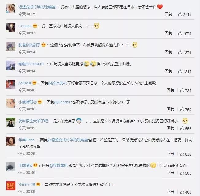 此次,两个中日少年的合照撞破次元壁,不少网友感叹“我竟然看到了山崎贤人和刘昊然同框!两个男生都是万千少女心中的梦啊”。粉丝大喊“这是什么神仙组合!”、“期待昊然弟弟和贤贤的合作”。小编也期待着两位美好少年的合作。