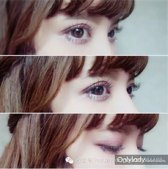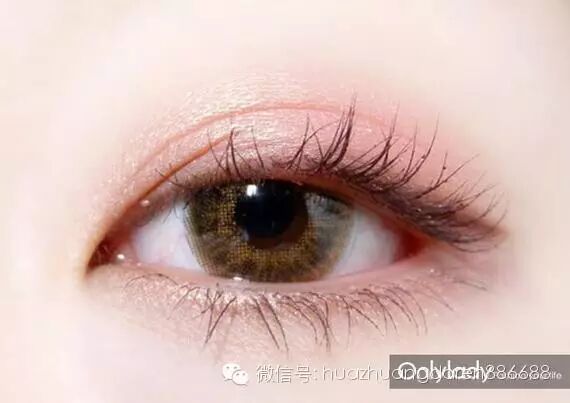 渐层色是很重要的,因为粉色容易让眼睛变的泡泡,所以可以在睫毛上方涂上细细的咖啡色,可以让眼睛变得有层次感。