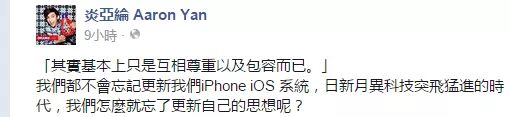 “我们都不会忘记更新我们iPhone iOS系统,日新月异科技突飞猛进的时代,我们怎么就忘了更新自己的思想呢?”