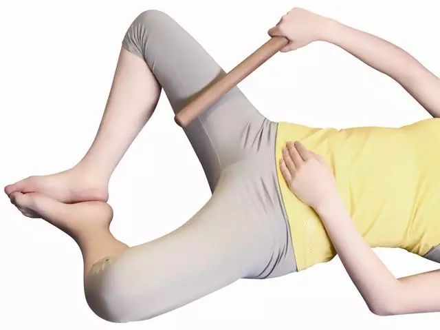 1. 准备一根40厘米左右的擀面杖,然后自然地仰躺于床上,两条腿稍稍蜷起,使两脚脚心相对,这时大腿的内侧自然摆于正面。