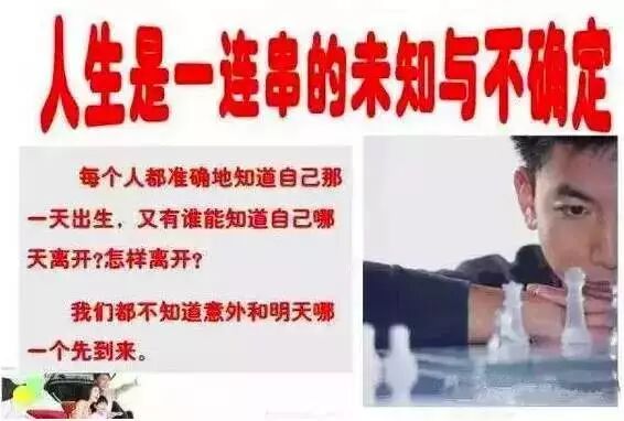 或许是因为初恋的突然离世,让章子怡意识到生命无常,人生如戏,曲终人散,终有谢幕的时候,既然不能计算出风险哪天来临,就得先将未知的风险和意外造成的损失转嫁给保险公司,让保险来延续对家人的爱、责任和希望。