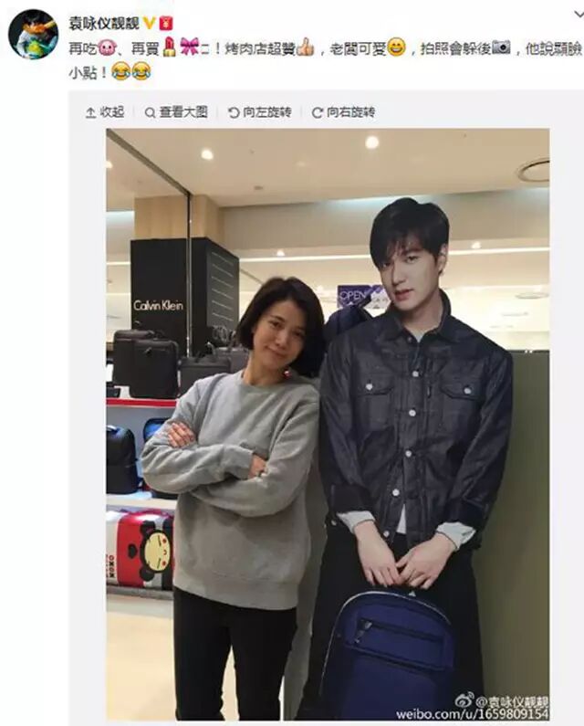 韩国媒体公布了韩国男星李敏镐与女团Miss A成员秀智在伦敦约会的照片,之后双方的经纪公司回应绯闻,承认两人已交往一个月,并希望广大粉丝能够支持祝福。消息曝光后,袁咏仪便在微博表达心情,自称“又开心,又伤心”,“我今天什么都不吃,我要去买包”。