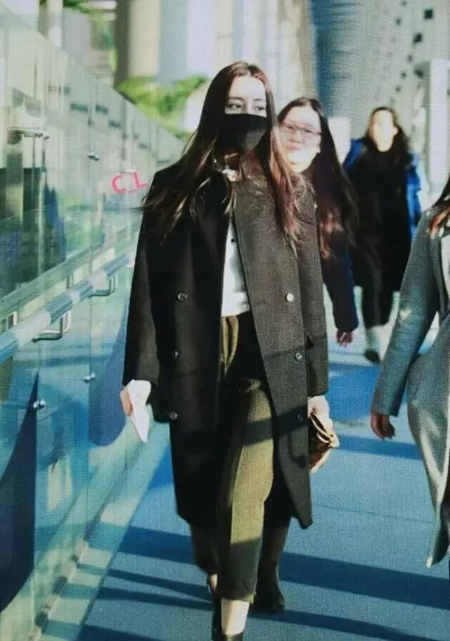 穿黑色长大衣内搭黑色紧身裤,全黑打扮,帅气又时髦,还很显瘦呢。