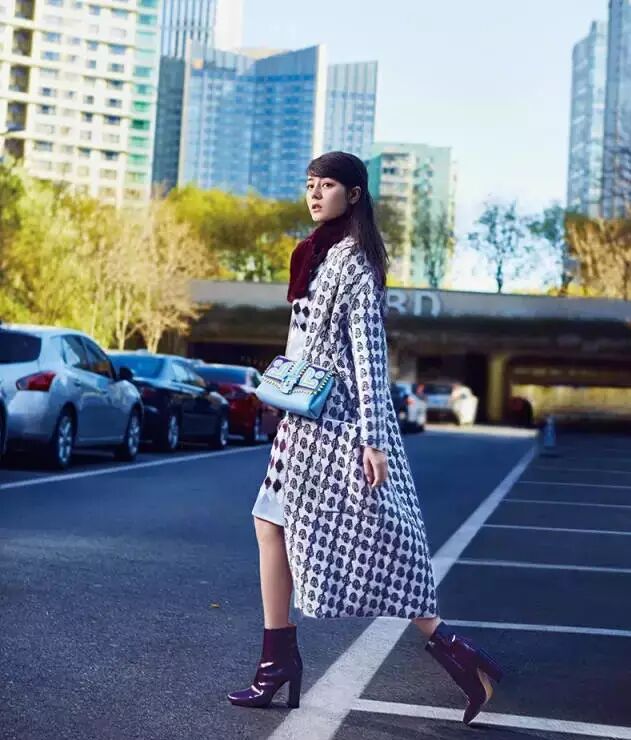 格子大衣搭配酒红色的穿法知性洋气,街拍美美哒!
