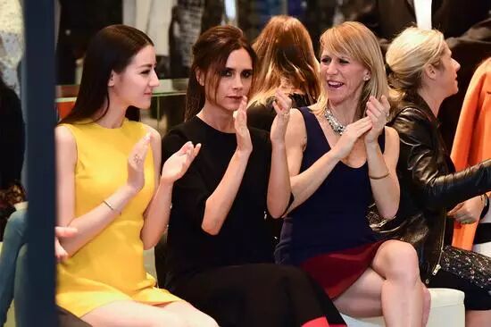 坐在英伦时尚女王贝嫂身边,颜值时尚指数丝毫不差,和品牌高层隔空交流。