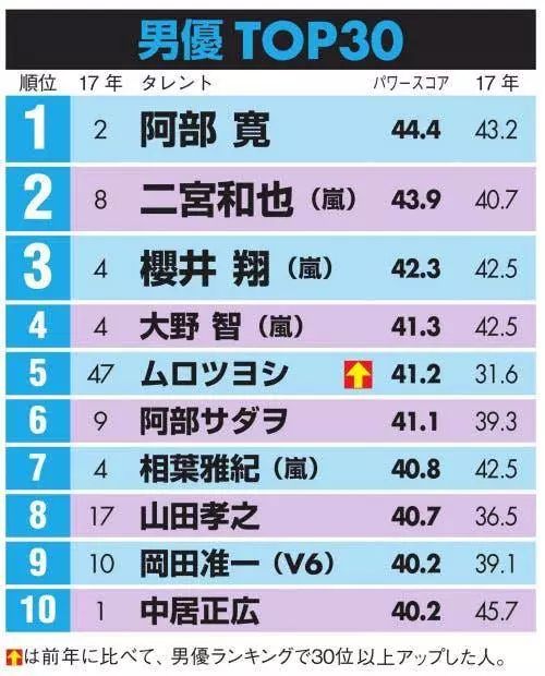 第十名:中居正广(40.2分)(小数点有四舍五入,所以会出现平分顺位低的情况)
