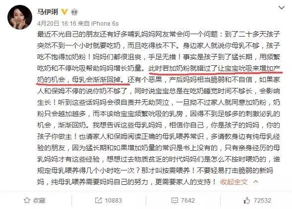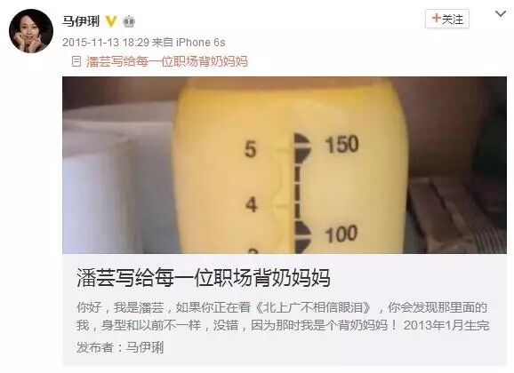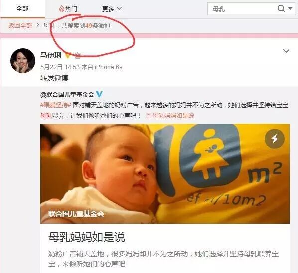 亲身倡导母乳喂养,她的微博中有将近50篇母乳相关的文章↓