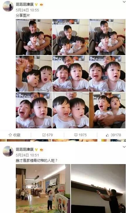 还有大家都拼不过的无时无刻不举着手机拍娃晒娃的范玮琪。有了孩子的她们,都像变了一个人,生命里除了娃大概还是娃了。
