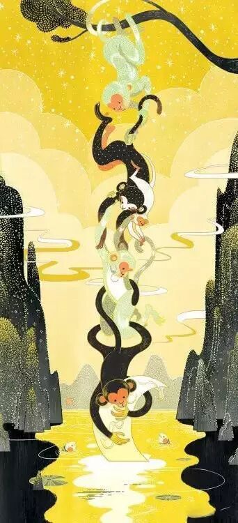 她还为奥美广告画了一幅《猴子捞月》
