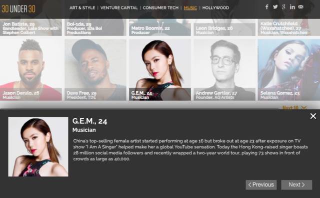在2015年福布斯中国名人榜中