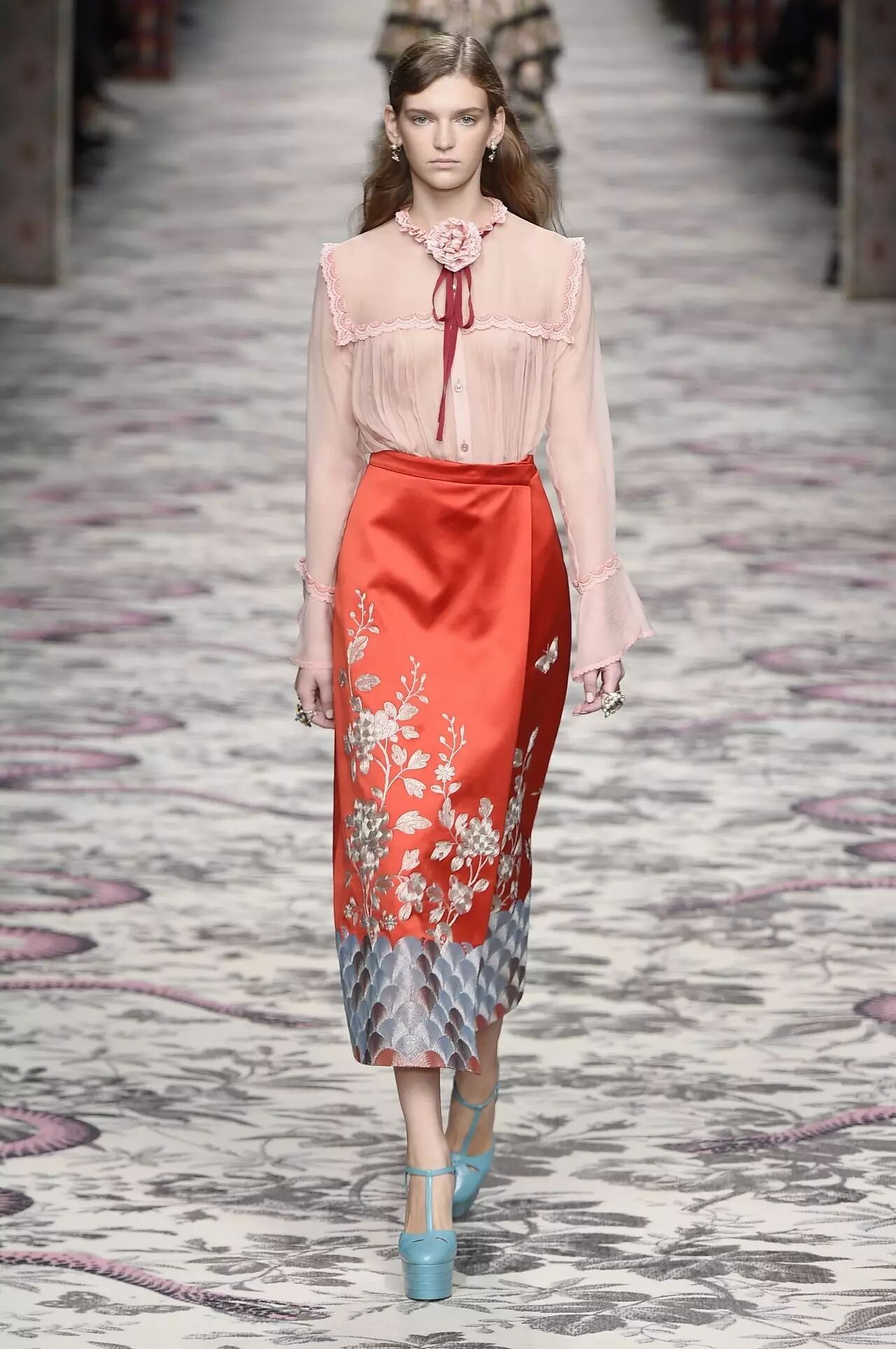 Top5 Gucci 2016春夏系列粉色荷叶袖衬衫