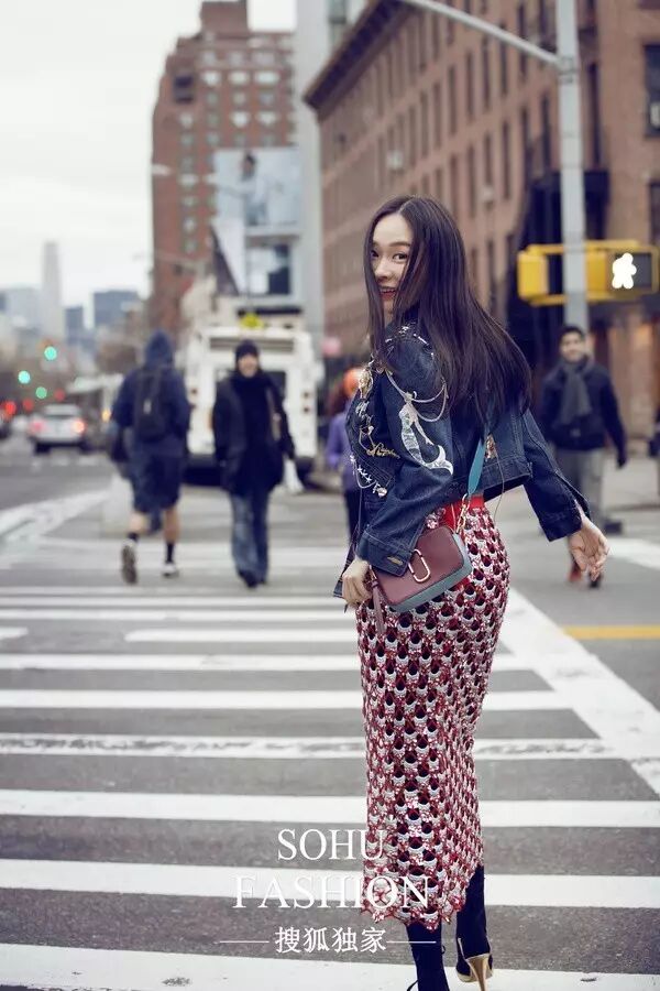 ▲霍思燕摩登时尚又玩趣俏皮, 牛仔与修身长裙撞色搭配使得整身在色调上更艳丽跳动,打造出纽约街头的时尚潮流感,更兼顾了服装的舒适度,视觉上很舒服,完美搞定所有场合。