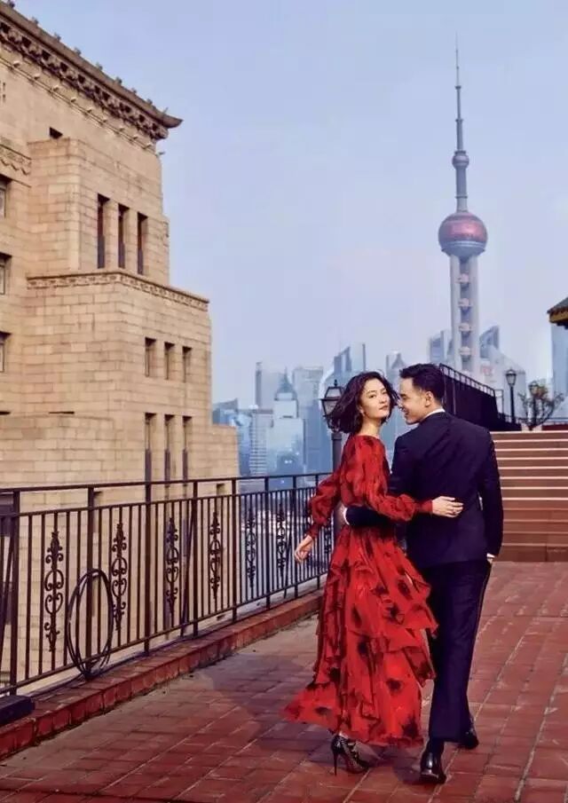 ▲杜鹃穿着MK红色印花飘逸连衣裙与阮经天登上《优家画报》4月号