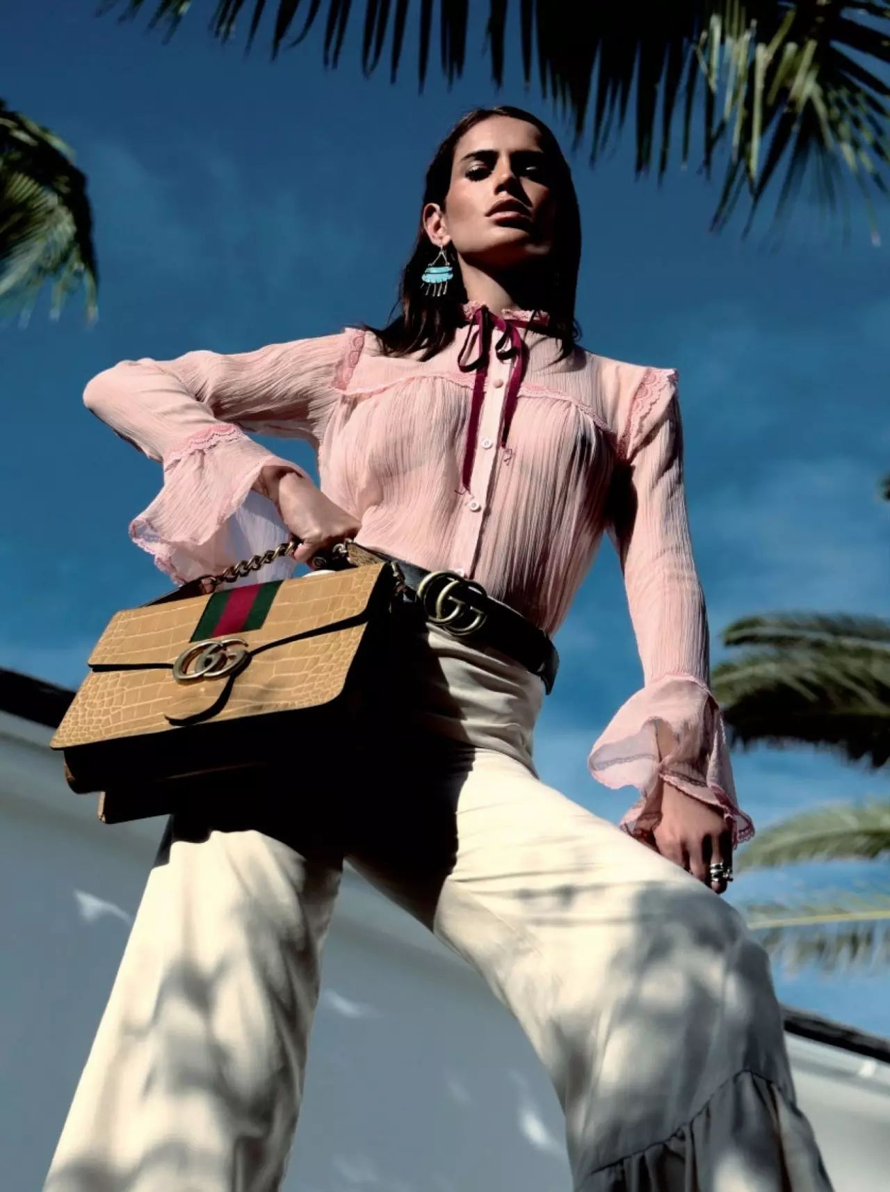 ▲Gucci的创作总监亚力山卓米开理这一季的作品中总有绵延不绝的罗曼蒂克式的少女情怀,这款粉色薄纱荷叶袖衬衫,甜美灵动,复古中展现十足的女人味。