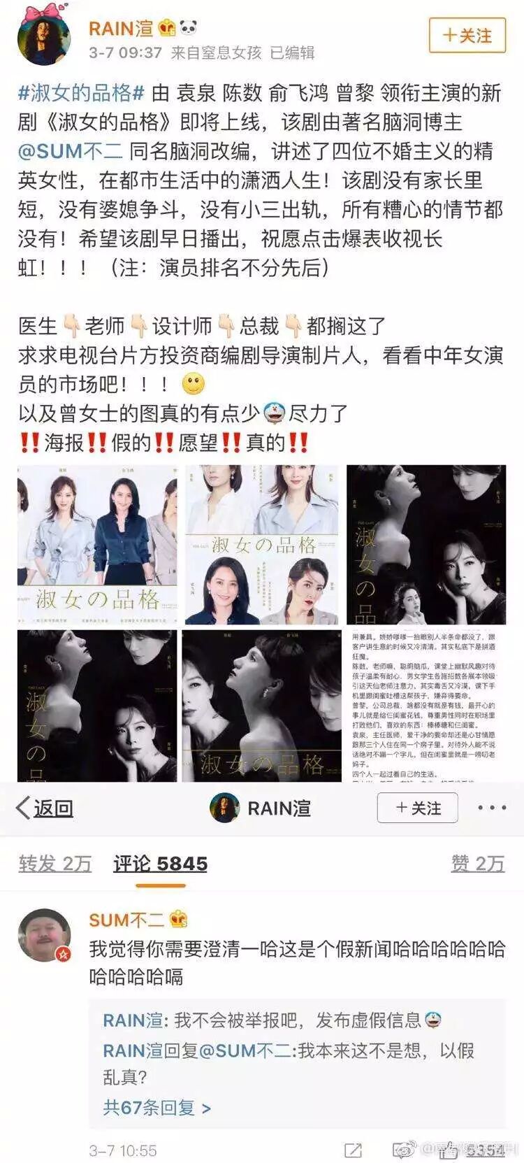 就在昨天女生节,微博火了一部都市独立女性新剧《淑女的品格》
