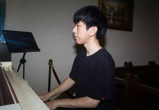 吴女士边上,坐着她的儿子。小伙子叫方诚,如果不是特别说明,很难把他与美国最好的流行音乐院校联系起来。瘦瘦的方诚,穿着vans的短袖,脚上穿一双黑色的篮球鞋。谈吐很朴实,不会像很多留学生一样,聊着聊着,就会蹦出几个英语单词来。但是,一坐在两岸咖啡的三角钢琴前,他马上像换了个人,两只手在键盘上飞舞,动听的音乐立刻吸引了一些客人,大家纷纷拿出手机来拍视频。