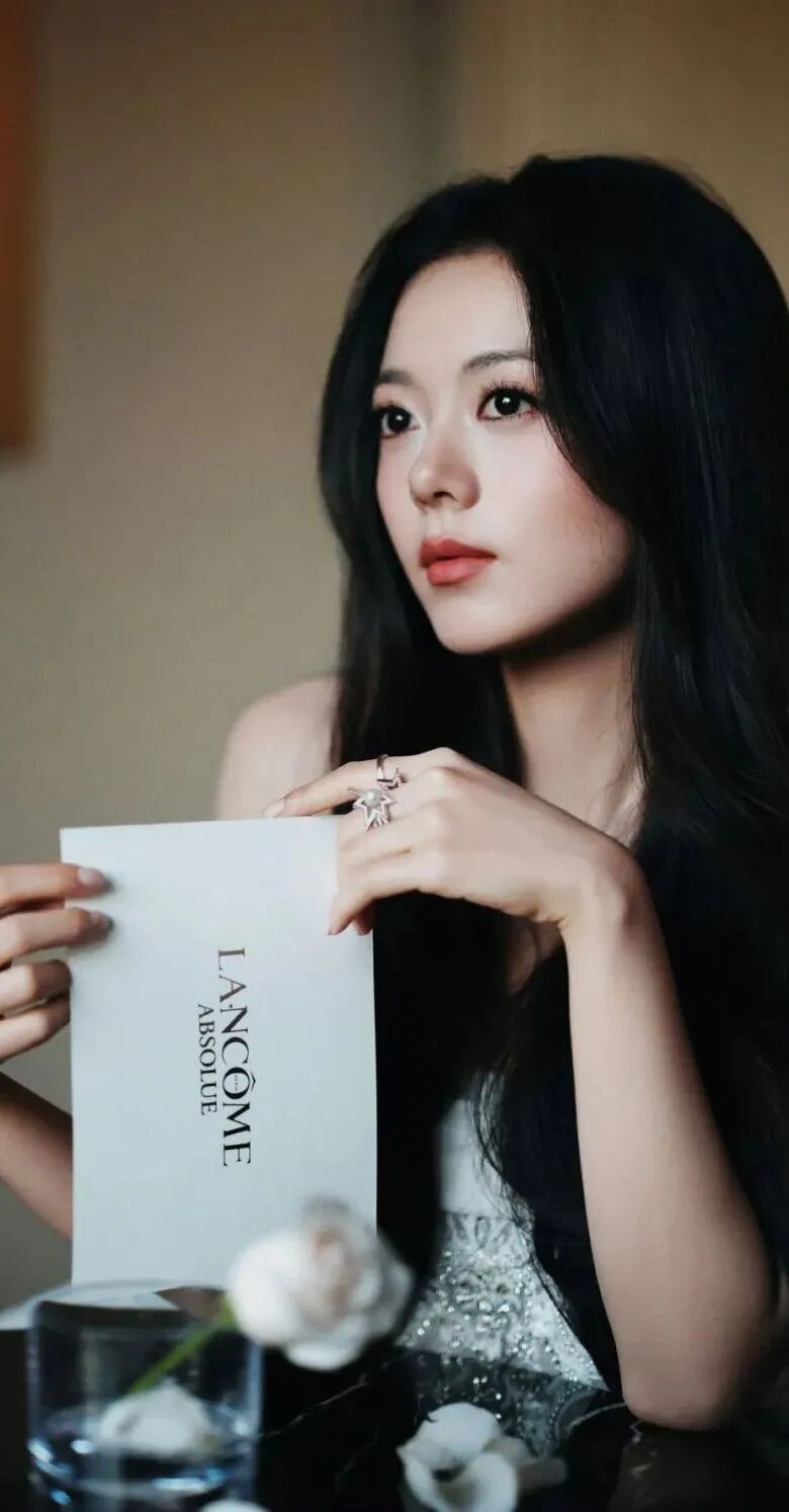 这得益于她的气质,是甜中带冷的冬季感美人。