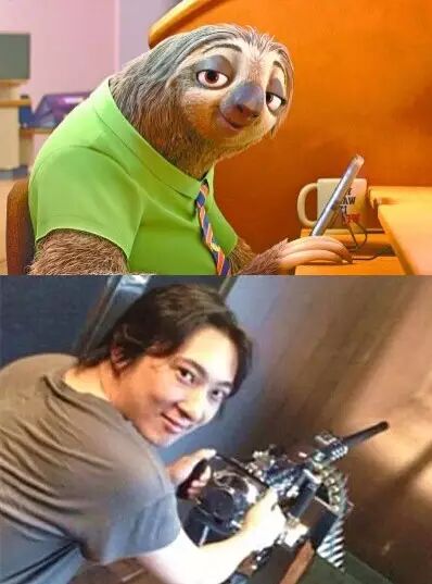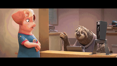 这也是为什么电影中整个机动车部门的工作人员都是树懒的原因,除了焦虑的主角兔朱迪外,一旁拍证件照的猪女士显然也完全不能适应。所有树懒工作人员不但语速都是慢悠悠的,更重要的是他们有一套刀枪不进的信息接收系统。任你再快,我亦如此,谁也没办法,完全取代了乌龟在慢界的头牌。