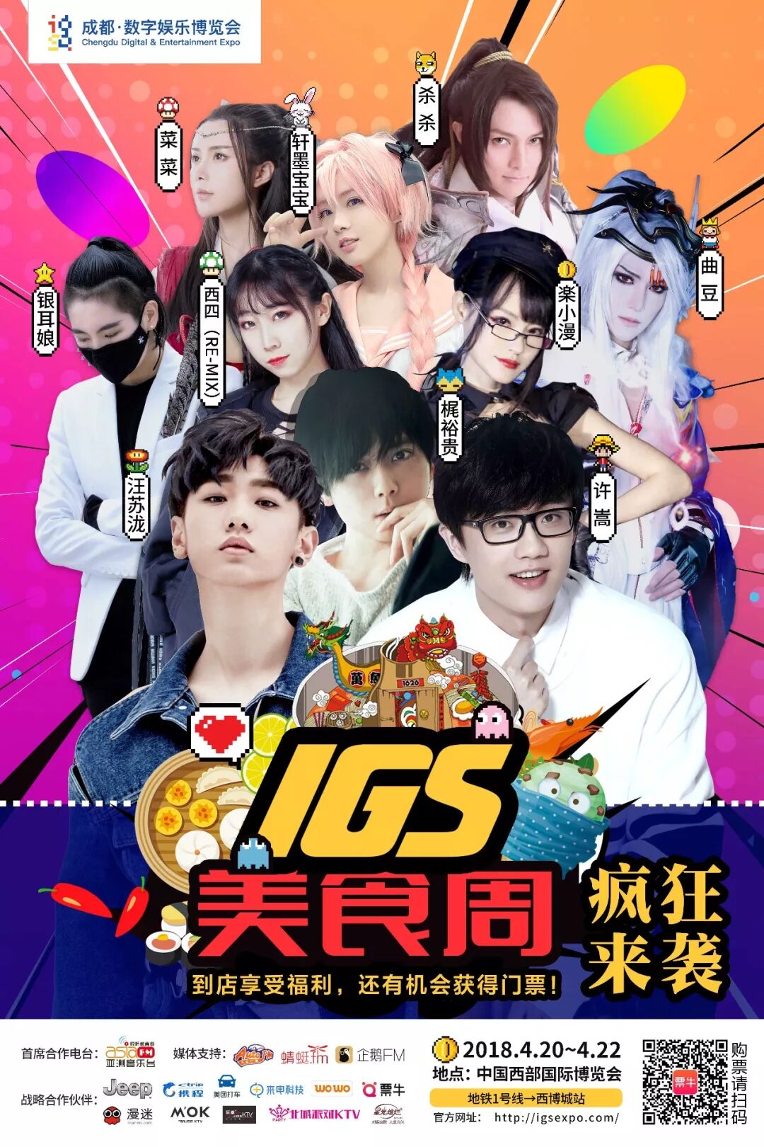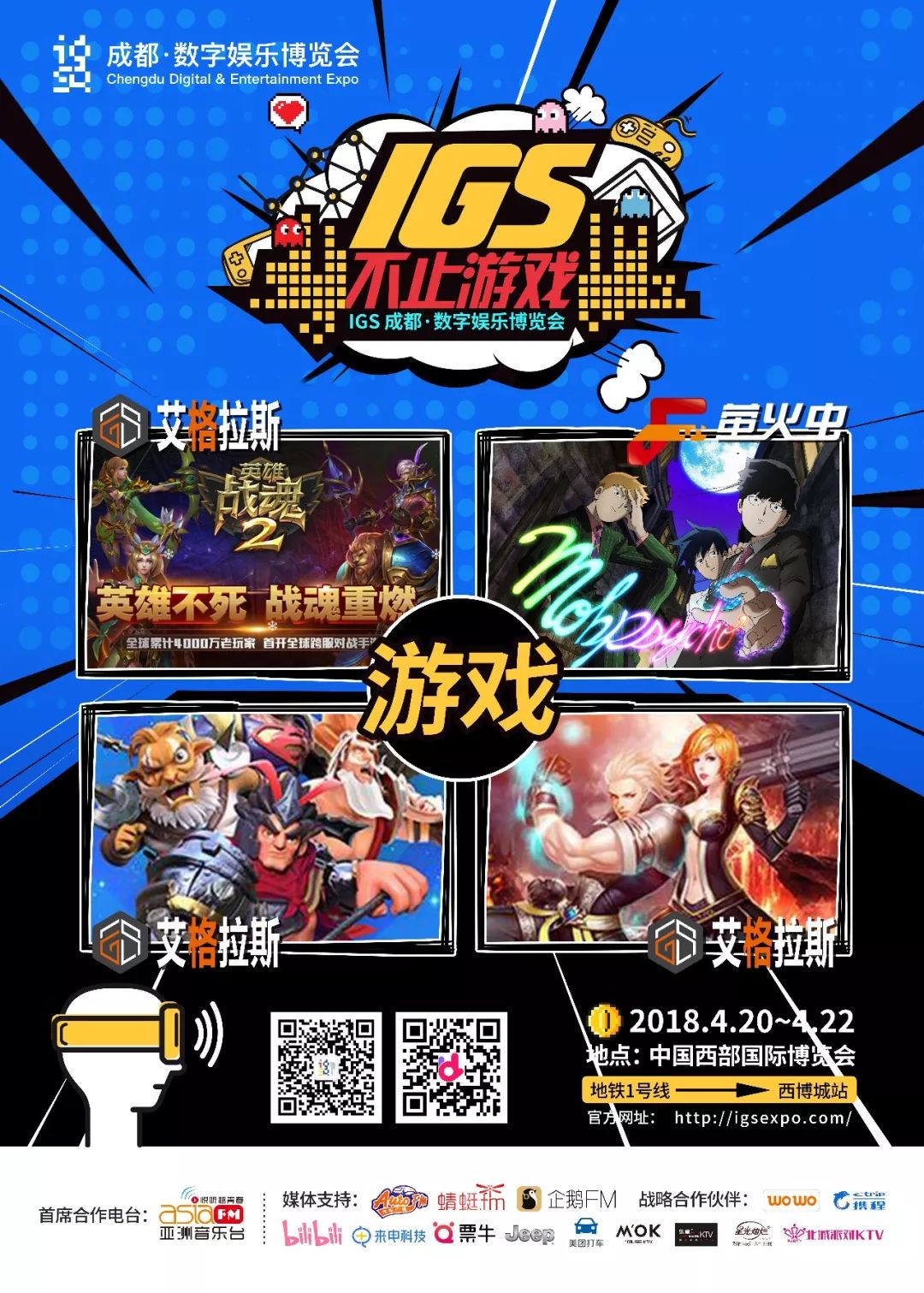 IGS(International Game Show)成都数字娱乐博览会,2018年4月21日-22日亮相中国西部博览城。场馆面积超10万平米,参展企业超过400家,汇集中外媒体超过1000家,涉及参展项目及产品超过300项,预计展期内人流量达20万次。展会期间集结国内外知名游戏企业、二次元文化厂商、知名电竞品牌赛事、全国宅舞大赛、高人气跨次元明星等优质内容。