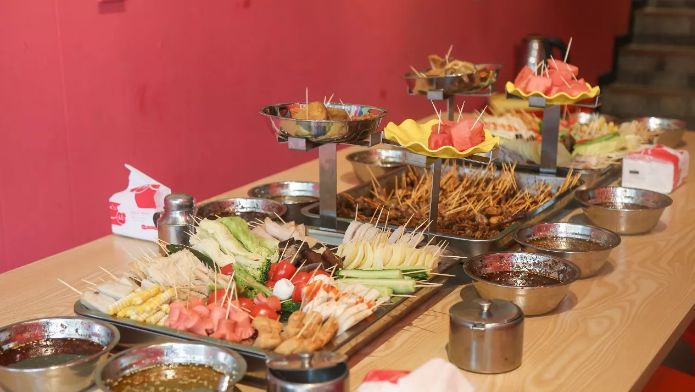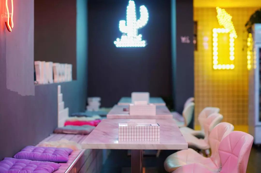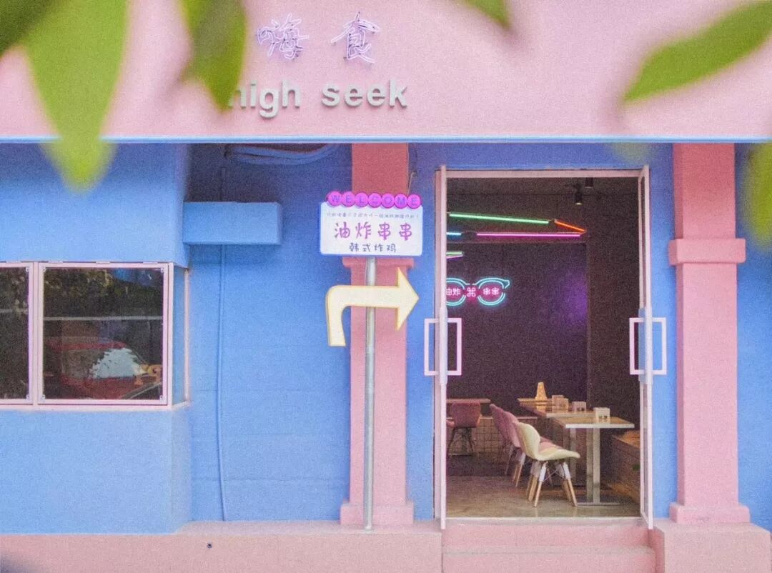你以为这是一家喝英式下午茶,来几块拿破仑的美味甜品屋。结果这粉嫩嫩的装修,却是一家串串店。老板说嗨食翻译过来就是“尽情嗨,放肆食!” 。店面装修风格非常年轻化,据说是根据英国一个艺术家的霓虹灯作品为灵感。