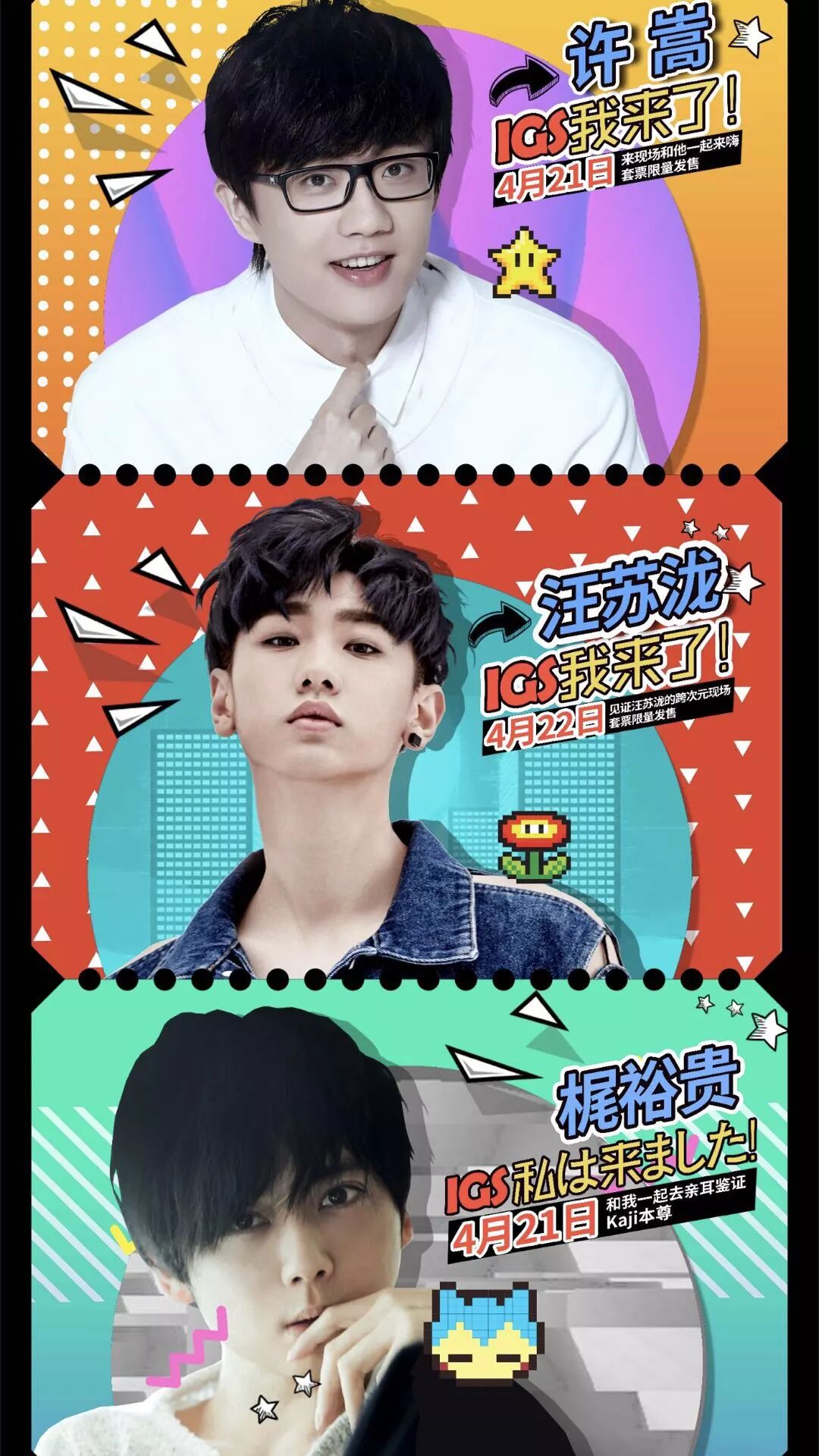 IGS成都数字娱乐博览会。展会时间:2018年4月20日—4月22日。展会地点:中国西部国际博览城。其中汪苏泷套票价:219元,其中许嵩套票价:219元。其他只需购99元普通票即可。