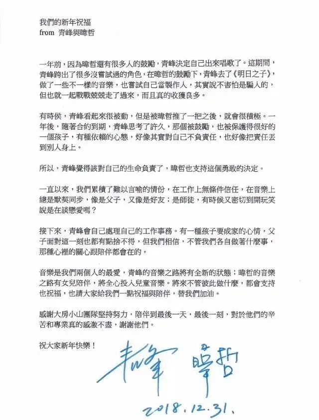 于是,在这一年年末,两人在律师的见证下,签署了合约终止协议书,确认词曲合作终止。