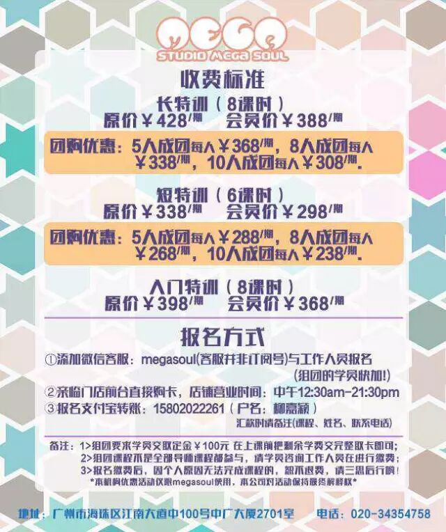 功能介绍:MEGA IDOL美嘉娱乐旗下的广州Mega Soul舞蹈培训机构,拥有全广州乃至华南地区最出色的舞蹈培训师资,更多资讯请关注我们的新浪微博:@广州美嘉索MegaSoul