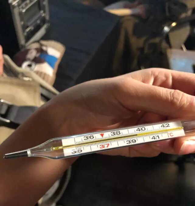 助理还配了温度计上显示接近40度的照片。