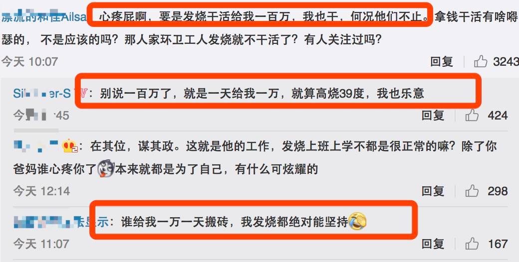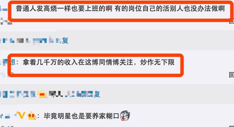 这下网友diss的更欢了,“拿着几千万的收入博同情!普通人发烧也一样要上班啊!”