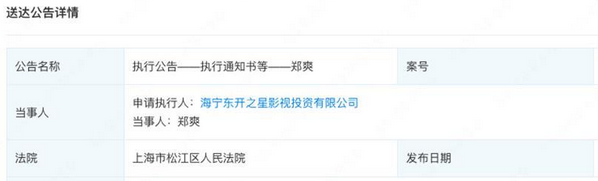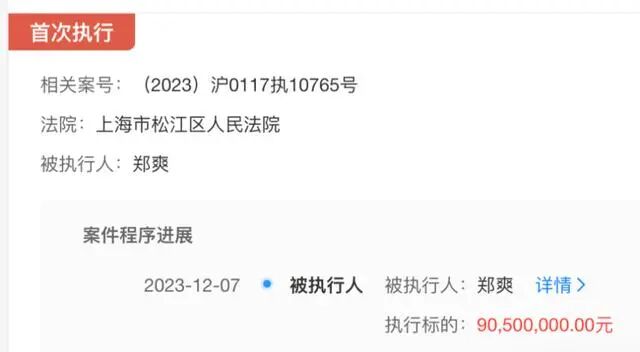 郑爽又出事,彻底完了 首席财经观察 内地女星 2024-01-19 19:33:23 402 创作不易,用心坚持,欢迎请BaGua喝几杯爱心咖啡!打赏并支持本文 打赏并删除本文 作者 | 周松涛来源 | 首席财经观察郑爽又上热搜了。天眼查App显示,近日,郑爽新增两则股权冻结信息,股权被执行企业分别为上海鲸谷座人工智能科技有限公司、上海艾艺信息技术有限公司,冻结股权数额分别为1360万元、125万元,冻结期限自2024年1月16日至2027年1月15日,执行法院均为上海市松江区人民法院。郑爽分别持有上述两公司68%、20%股份,认缴出资额为1360万元、125万元,值得一提的是,上海鲸谷座人工智能科技有限公司另一位股东为郑爽前夫张恒。郑爽除了这次股权被冻结之外,前不久,郑爽还被强制执行9050万元。天眼查显示,郑爽12月7日新增一则被执行人信息,执行标的9050万元,涉及海宁东开之星影视投资有限公司与其服务合同纠纷案件,执行法院为上海市松江区人民法院。据了解,2016年1月13日,海宁东开之星影视投资有限公司作为甲方,与乙方上海郑爽影视文化工作室签订《策划服务合同书》,甲方分期支付乙方策划服务费总计3050万元。同时,甲方邀请乙方艺人郑爽参与某影视剧的拍摄,出演第一号女主角。然而,涉案电视剧制作拍摄完毕,还未申请发行许可时,郑爽却已被“封杀”。海宁东开之星影视投资有限公司随后将郑爽告上法庭,且认为,乙方艺人参与违法犯罪活动或因劣迹,从而遭受封杀影响本剧至拍摄和上映的,甲方有权解除本合同,乙方应退还甲方已支付的酬金并赔偿甲方遭受的截止当时而遭受的实际经济损失。2021年12月16日,松江法院作出一审判决:要求郑爽返还服务费3050万元并赔偿经济损失6000万元,后郑爽提出上诉,二审维持原判。不过,郑爽并未履行这次执行。上海市松江区人民法院依法向郑爽送达公告,因未履行民事判决确定的义务,海宁东开之星影视投资有限公司已向法院申请执行。现送达执行通知书、报告财产令,以后执行中作出的法律文书等,情况没有变化的,不再另行公告送达。此前,郑爽因为阴阳合同被罚款2.99亿,此后成为劣迹艺人,淡出影视圈。郑爽,1991年8月出生于辽宁省沈阳市,毕业于北京电影学院,中国内地影视女演员。2009年,郑爽因主演青春剧《一起来看流星雨》大火。不过,现在的郑爽已经麻烦不断,多次被强制执行,还拒绝执行,成为老赖,已经彻底凉了。点击关注,跟主编交个朋友 版权及商务合作请加QQ / 微信:2881339630点右下角在看,可以优先收到我的文章↓ 创作不易,用心坚持,欢迎请BaGua喝几杯爱心咖啡!打赏并支持本文 打赏并删除本文 感谢您的支持鼓励,我会继续努力的!文章地址:用户邮箱:打赏金额:USDT 请输入数字点击”去打赏“,即可进行打赏支持本文章哦 郑爽 发表评论