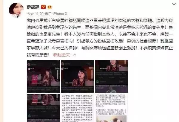 而伊能静对此回应称,自己是在五年空白后遇到的秦先生,还直指媒体对于采访内容断章取义,是希望孩子父母(伊能静、庾澄庆)恶言相向,引起双方粉丝互相攻击。最后又将话题引到媒体应起到该有的意义,关注虐童新闻上面……