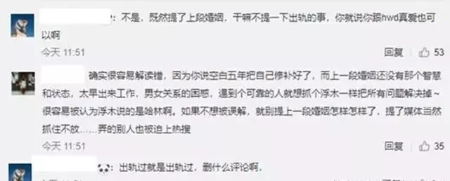 出轨问题并没有解释清楚,而且采访中也的确提到了上一段婚姻出现的问题,话说得不够清楚,很容易产生误解。