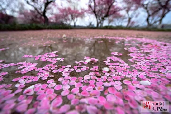 3月5日,一夜风雨,杭州后孤山梅园满地落梅。记者 林云龙 汪驰超 拍友 里尔 摄