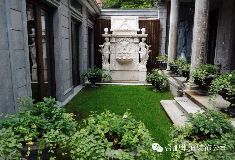 一个精心雕刻过的小花园连接着第二栋洋楼