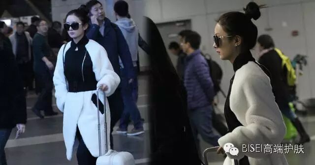 丸子头的造型清纯时尚,黑色皮质上衣配上休闲长裤,即使是走在匆匆忙忙的机场,也不失优雅,演绎了一个成熟的小女人。