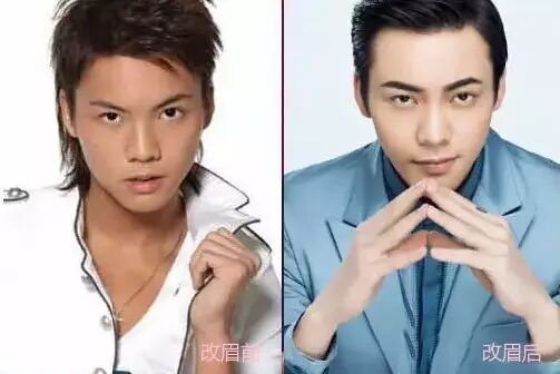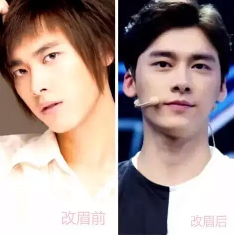 说到靠眉妆逆袭的男星,说完李易峰不得不提的就是李易峰的好基友陈伟霆了。一部《古剑奇谭》让陈伟霆咸鱼翻身成为国民大师兄。很多人拿出他前期的“新人照”抨击他是“整容师兄”,其实上图对比一下,人家不过是肤色白了一点,发型变了一下,眉形有型了很多,有木有!