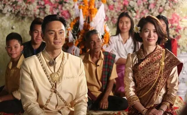 张智霖和袁咏仪参演的内地明星夫妻档真人秀第二季,在老挝为太太举行一次浪漫的传统婚礼。两人披上当地传统 结婚礼服,棕色新娘服、头插鲜花的袁咏仪淡素峨眉,端庄贤淑,手上戴金镯和金戒指,就连张智霖都掛金颈链及金吊坠,原来老挝人结婚的习俗,都喜欢在身上佩带金饰;除此之外,新郎更要配上一把纯银、宝石饰的长剑,张智霖亦入乡随俗陀剑娶妻,又金又银,好闪!