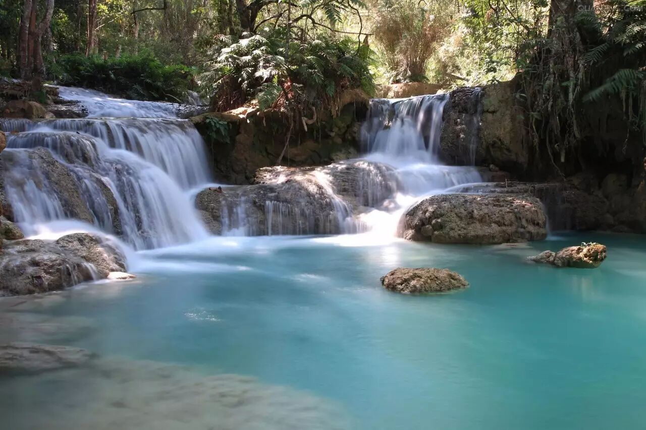 距离琅勃拉邦30公里的光西瀑布,被称为“四川黄龙”,喜欢刺激的朋友一定要来这里玩耍,因为这里的蓝澈的石灰岩水潭,你可以随便跳,随便游,随便泡!水潭周围没有任何人工的护栏,只有青葱的树木和绿草环绕。