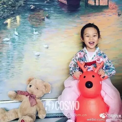 生日了王源就送妹妹一只玩偶熊,从此只要有甜馨的照片就会有这只熊......