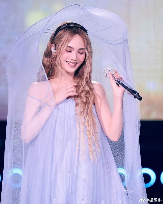 她站在舞台的聚光里,礼服的白纱泛着细碎闪片,手里的话筒轻贴在胸前。上一轮巡演她常以利落的短装衬舞台张力,这次的长纱裙是全新尝试,连站姿都跟着礼服的柔,没了之前的锐感,多了点 “安放情绪” 的温柔。她说 “完美不是零瑕疵”,这站姿里的松弛,就是她眼里 “不用紧绷的完美”。