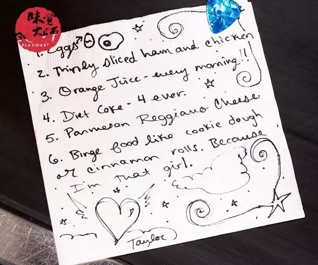 到了周末,Swift才允许自己吃一些在普通人想象中明星不会吃的食物。像很多美国年轻人一样,她也喜欢披萨和热狗,除此之外她还超爱Levain Bakery家的超大号巧克力饼干。