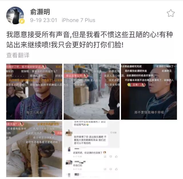 俞灏明本人对网友的人身攻击表示不能接受,并亲自下场手撕攻击者。