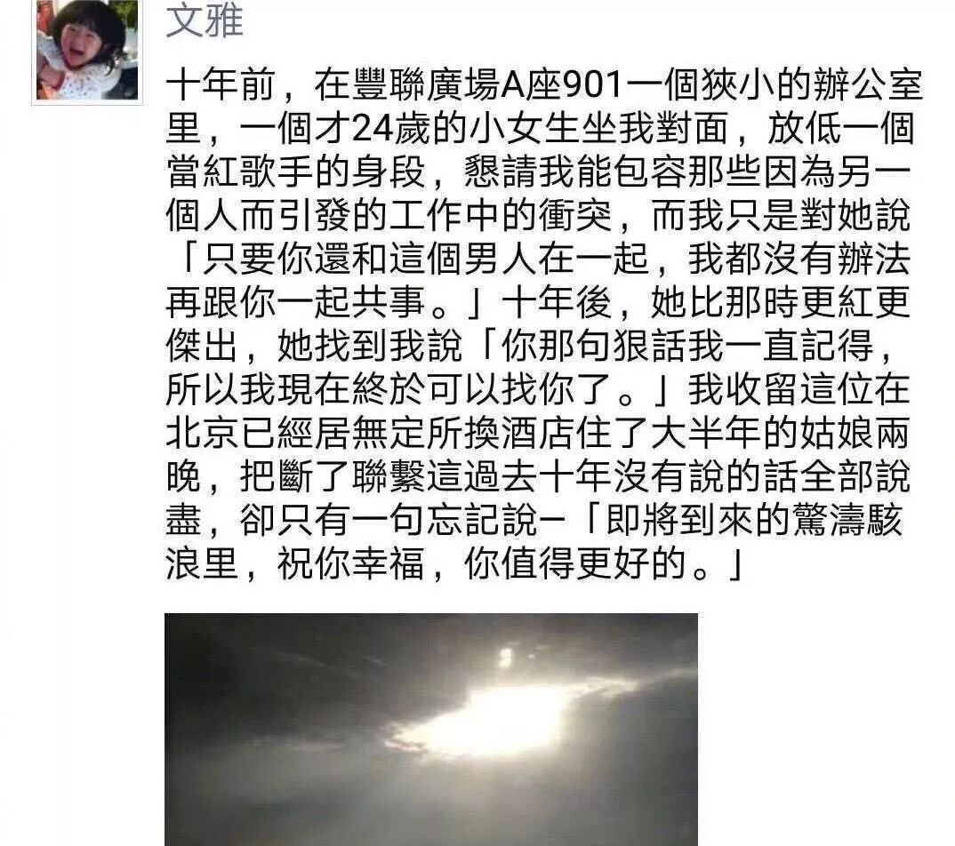 紧接着剧情发生反转,歌手王铮亮的朋友圈被爆出,称心疼靓颖,暗指这位同行的小鲜肉也不是非常靠谱。