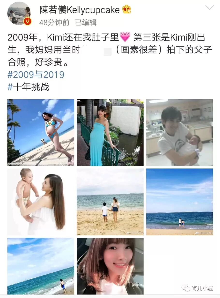 记得去年好像有段时间比较流行晒自己的十八岁,2019年,不知不觉又掀起了晒十年前后对比照的风。但陈若仪分享的是一大波十年之间的许多片段,并说道:2009年,Kimi还在我肚子里,第三张是Kimi刚出生,我妈妈拍下的父子合照,好珍贵。2009年与2019年,十年挑战!
