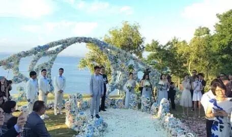 此外,从婚礼统筹师吴小姐得知,整个婚礼前期工作大概花了两个多月,邀请了350多位宾客 。被问到婚宴中的鲜花包了六架飞机空运,她则笑指:“没那么多了,但为了鲜花保持新鲜,也需要空运过来的。”她继谓婚礼最难之处也是物资运送和这里的天气,至于婚礼所花费用她就不便透露,只是表示非常的多!